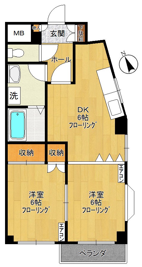 礼金ゼロ!JR南武線・稲田堤駅より徒歩7分、オールフローリング仕様の2DKのお部屋です。1階のお部屋・・・